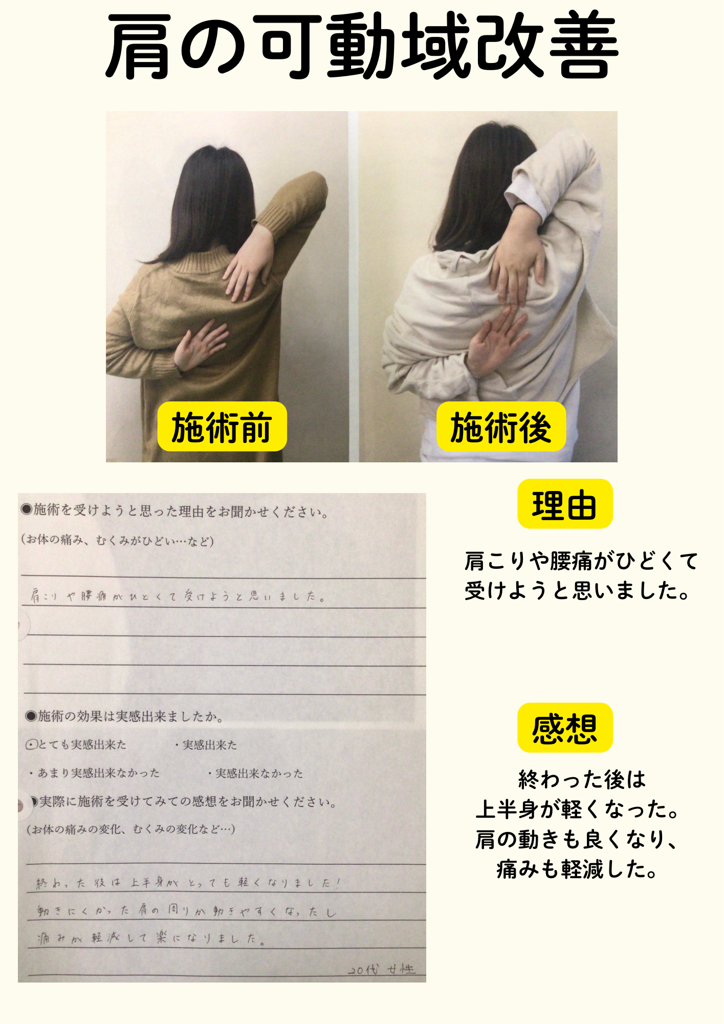 日常生活で特に多い、肩こり、腰痛などを根本から改善します。