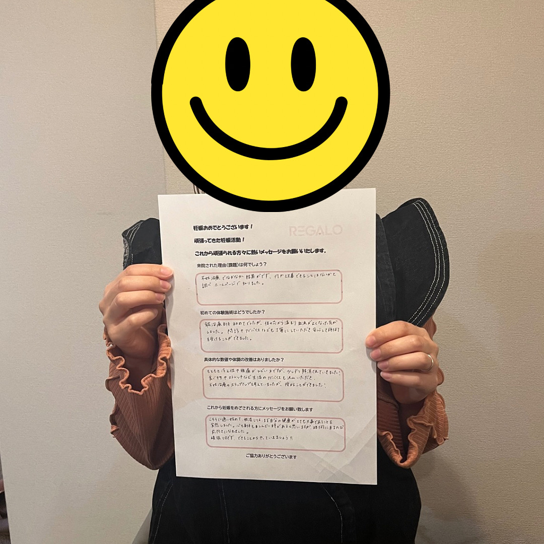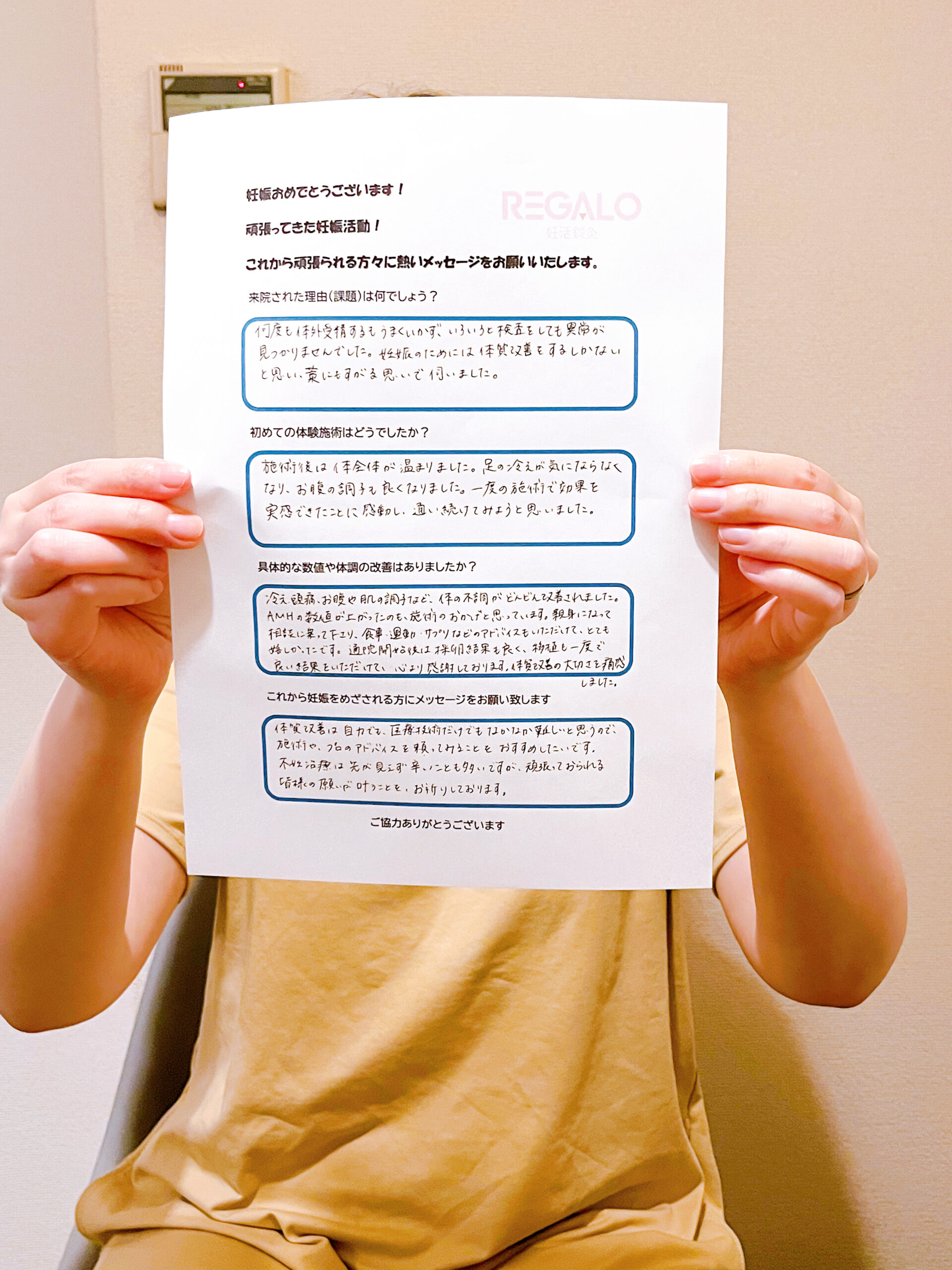年齢の割には、採卵の結果も良かったですし、胚移植の着床率も良かったので、施術の効果は、すごくあった思います